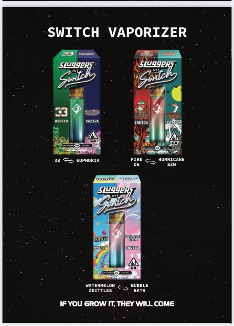 Experience two distinct vibes in one sleek device with the Sluggers Switch Watermelon Zkittles × Bubble Bath 2 g Dual-Chamber Disposable Vape. This premium vape combines two live resin oils — juicy, candy-fruit sweetness from Watermelon Zkittles and mellow, floral-mint calm from Bubble Bath — for a customizable session that’s rich in flavor and effects.